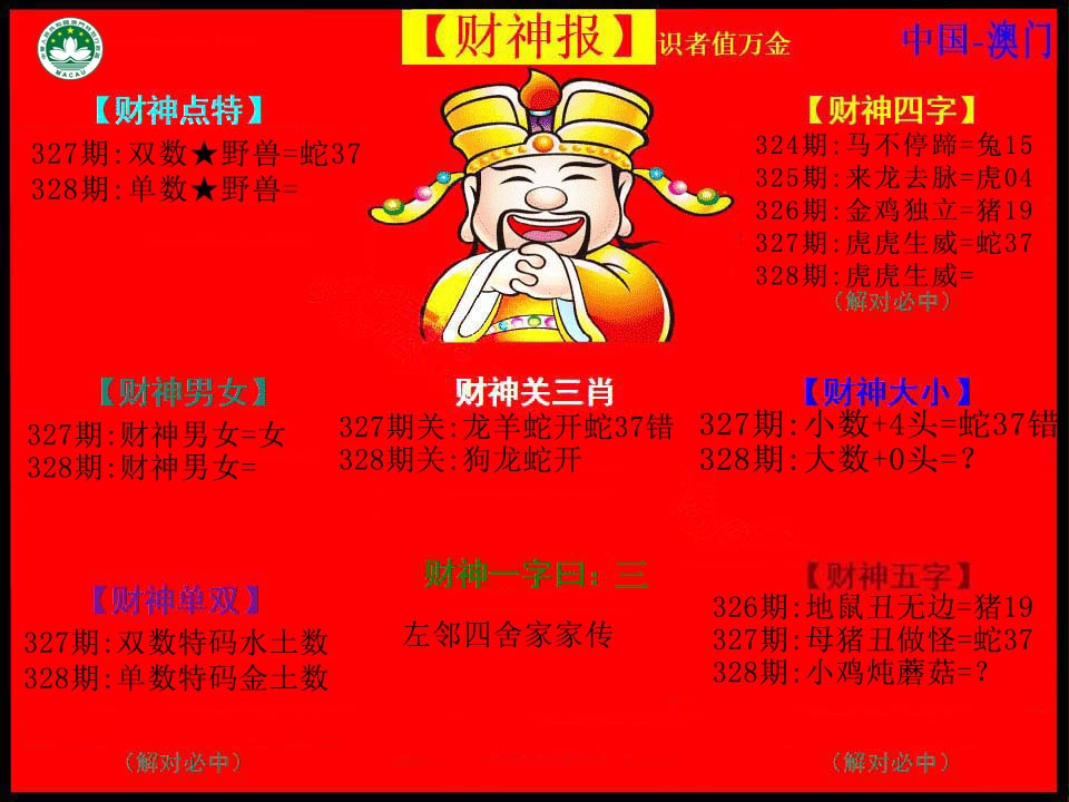 327期:六肖特围---羊猴蛇龙鸡鼠---开:蛇37 |
