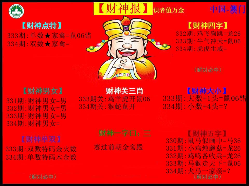333期:大小中特【大大大】开:?00准 |